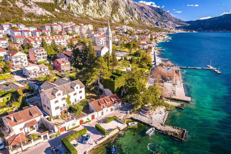 Detour: With its compact Stari Grad (Old Town) and long waterfront promenade, the town of Herceg Novi (pronounced “her-tseg noh-vee”) is a great hub for exploring the outer bay. The town is known for its cafes, bars, restaurants and sunbathing platforms buzzing with holidaymakers.